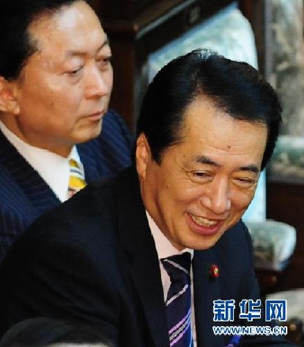 6月4日,日本執政的民主黨新代表(黨首)菅直人在國會參議院首相指名選舉中當選新一任首相。這是菅直人當日早些時候在眾議院全體大會上致意。 新華社記者 季春鵬 攝