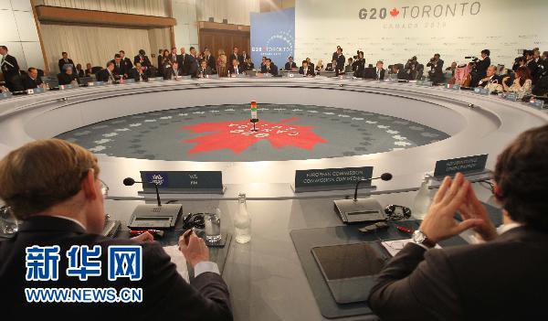 6月27日,二十國集團(tuán)領(lǐng)導(dǎo)人第四次峰會(huì)在加拿大多倫多舉行,中國國家主席胡錦濤出席峰會(huì)。 新華社記者 樊如鈞 攝