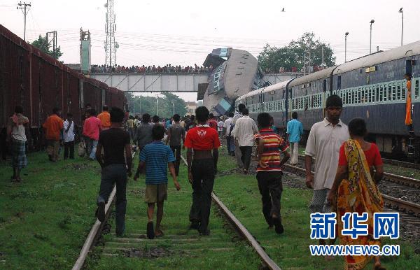 7月19日,在印度東部西孟加拉邦賽恩提亞的一個火車站,人們趕往火車相撞事故點(diǎn)。