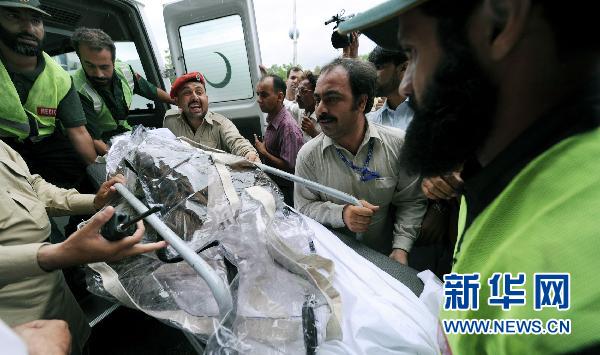 7月28日,在巴基斯坦首都伊斯蘭堡,救援人員將一名墜機(jī)遇難者的遺體運(yùn)抵一家醫(yī)院。當(dāng)日上午,一架載有152人的客機(jī)在巴基斯坦首都伊斯蘭堡附近的默爾加拉山墜毀。巴基斯坦警方說(shuō),失事現(xiàn)場(chǎng)已發(fā)現(xiàn)超過(guò)90具遇難者遺體。新華社/法新