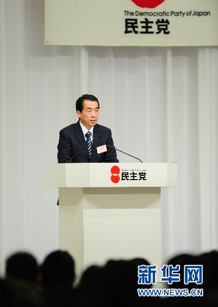 日本首相菅直人14日下午在民主黨代表(黨首)選舉中擊敗民主黨前干事長小澤一郎,連任民主黨代表。