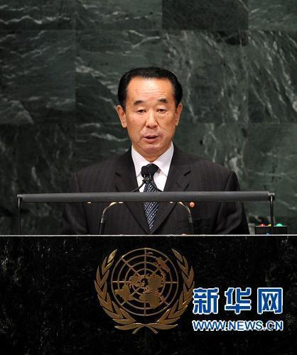 9月29日,朝鮮副外相樸吉淵在紐約聯合國總部舉行的第65屆聯大一般性辯論上發言。朝鮮副外相樸吉淵發言時說,只要美國不停止對朝鮮的武力威脅,朝鮮就不會放棄核威懾。新華社記者 申宏 攝