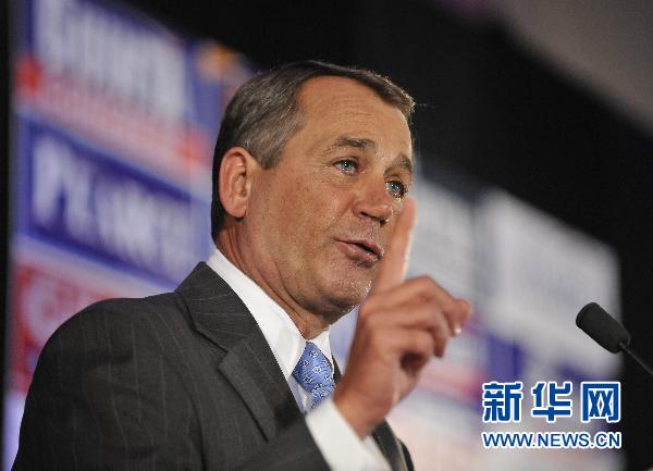 11月2日,美國眾議院少數黨領袖約翰·博納在華盛頓發表演講。美國2010年中期選舉2日晚落下帷幕。出口民調結果顯示,共和黨不僅奪回眾議院多數黨地位,而且在民主黨原本占優的參議院也擴大了“地盤”。而執政的民主黨只保住了在參議院的微弱多數黨地位,“兩院分治”格局已經形成。 新華社記者 張軍 攝