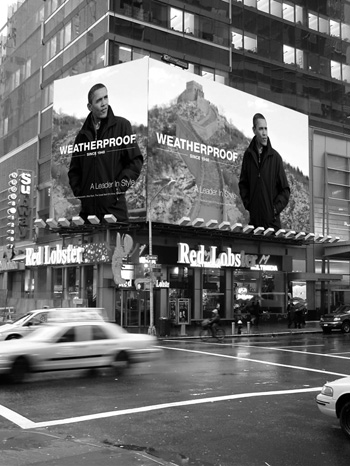今年1月,紐約街頭出現印有奧巴馬形象的巨幅廣告招貼畫。