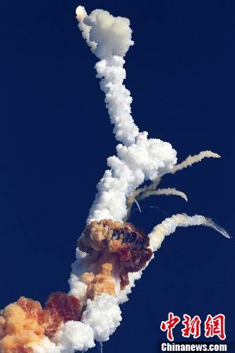 12月25日,印度新型通信衛星發射升空后爆炸特寫圖。來源:中國新聞網