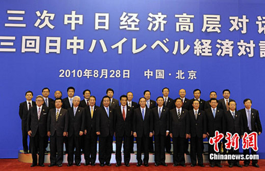 8月28日,第三次中日經(jīng)濟(jì)高層對話在北京人民大會堂舉行。中國國務(wù)院副總理王岐山、日本外相岡田克也等出席。中新社記者 劉震 攝