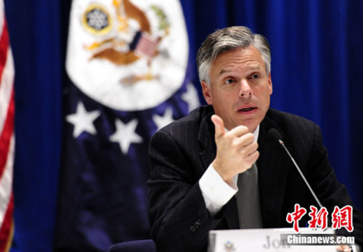 1月12日下午,在中國國家主席胡錦濤即將訪問美國之前,美國駐華大使洪博培在大使館舉辦一場媒體見面會。洪博培表示,美中兩國目前關系良好。中新社記者 侯宇 攝