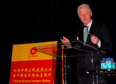 克林頓當日下午在曼哈頓接見中國商界領袖團一行,并發表演講,隨后與有中國“商界華陀”之稱的企業家嚴介和對話,共同為美中經濟發展與合作“把脈”。