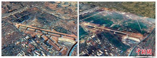 仙臺機場海嘯地震前后對比圖。