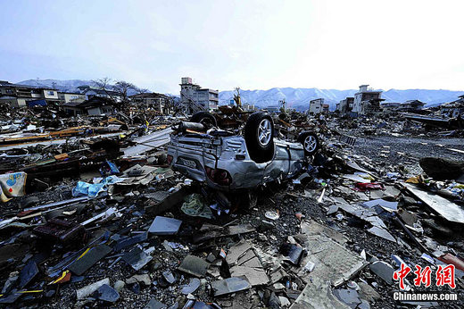 3月16日上午,日本巖手縣大船渡市遭“3.11日本大地震”引發的大海嘯襲擊后的景象。中新社發 侯宇 攝