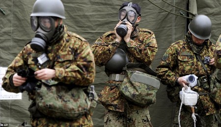 士兵全副武裝清除日本核電站泄漏出的輻射物質(zhì)