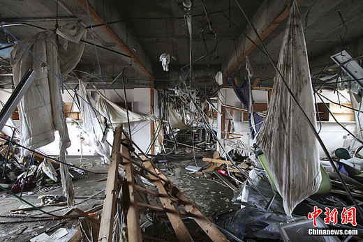 3月15日,日本9.0級大地震和海嘯發(fā)生后。日本宮城縣醫(yī)院病患被醫(yī)護人員救出,但是醫(yī)院還是受到了相當大的破壞。