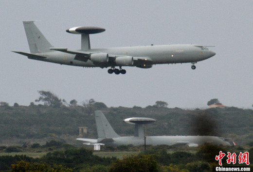 3月20日,在位于塞浦路斯的英國阿克羅蒂里空軍基地,一架英國皇家空軍飛機準(zhǔn)備著陸,另一架飛機停在后方。美國國防部聯(lián)合參謀部主任威廉·格特尼19日在五角大樓新聞發(fā)布會上透露,在第一波襲擊中,美國和英國的軍艦和潛艇向利比亞海岸的20多個防空目標(biāo)發(fā)射了112枚戰(zhàn)斧式巡航導(dǎo)彈。