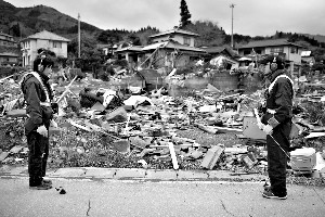 4月4日,日本巖手縣大船渡,供水系統(tǒng)調(diào)查員正在探測地下水泄漏情況。
