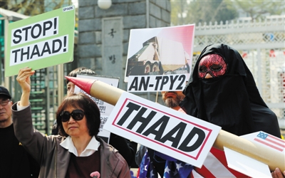 韓美部署薩德系統(tǒng)的磋商已經(jīng)持續(xù)一段時(shí)間,一直遭到韓國民眾的反對。圖為2015年4月10日,韓國民眾在國防部前示威,反對美國在朝鮮半島部署“薩德”系統(tǒng)。資料圖片