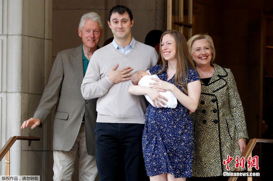 當地時間2016年6月20日消息,美國紐約,美國前總統克林頓與現任民主黨總統參選人希拉里夫妻倆18日喜迎第2個外孫,獨生女切爾西在推特宣布兒子誕生喜悅,并將孩子命名為“艾丹·克林頓·梅茲文斯基(Aidan Clinton Mezvinsky)”。圖為6月20日切爾西抱愛子走出醫院。