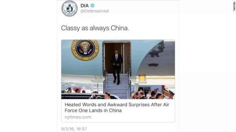 PS:那個發(fā)推特諷刺中國的美國國防情報局,后來很快刪帖了,還更新的推文道歉,稱之前的貼子是被錯誤地發(fā)出,不能代表國防情報局觀點(diǎn)。