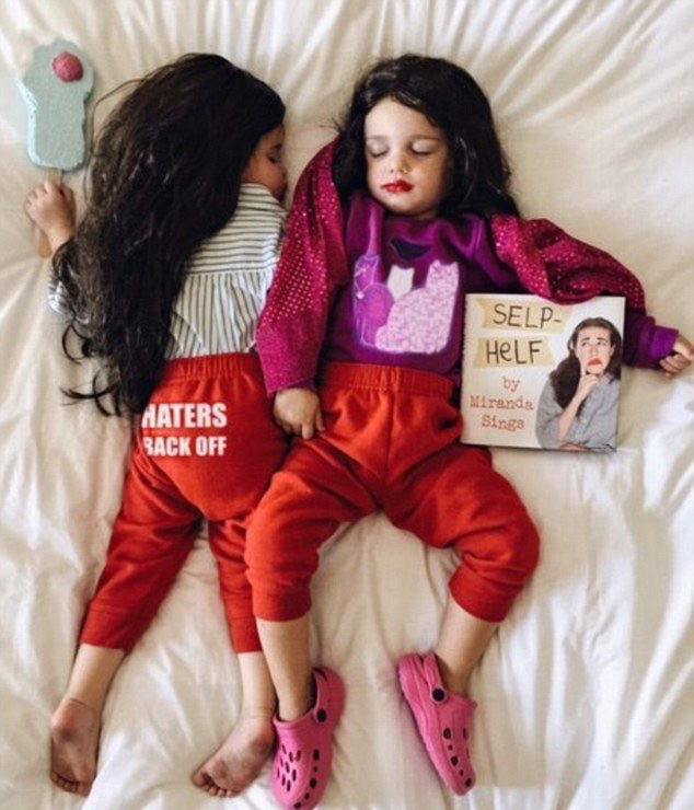 一張照片中,艾瑪和米拉被媽媽打扮成了金·卡戴珊。她們穿著豹紋上衣和黑色緊身皮褲、腳踩高跟鞋、戴著黑色墨鏡、一頭黑色長卷發(fā),霸氣十足。而另一張照片里,她們又搖身一變,成了總統(tǒng)候選人“希拉里”和“特朗普”。