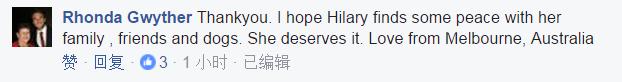 “真心希望希拉里能從她的家人、朋友、或者狗狗中找回平靜。她值得這些!