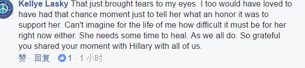 “加油希拉里!我們知道你被深深地被傷害了,但你值得現在好好休息,花時間來放松一下旅行或者用其他方法滿足下精神世界!”