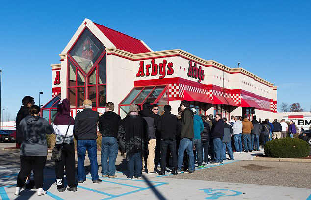 【環(huán)球網(wǎng)綜合報(bào)道】據(jù)英國《每日郵報(bào)》11月13日報(bào)道,近日,美國著名快餐連鎖品牌Arby推出了新款鹿肉漢堡。聞此消息,從早上10點(diǎn)開始,密歇根州的民眾就在Arby的店門口排起了長隊(duì),不到30分鐘,120個(gè)漢堡就賣完了。