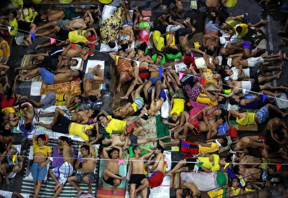 據(jù)外媒報道,菲律賓馬尼拉奎松城的一所監(jiān)獄現(xiàn)在變得異常擁擠,大廳和樓梯間遍地睡著囚犯,每150個人分享一個廁所。比起外面正在上演的致命的毒品戰(zhàn)爭,這里已經(jīng)算是安全的避難所了。