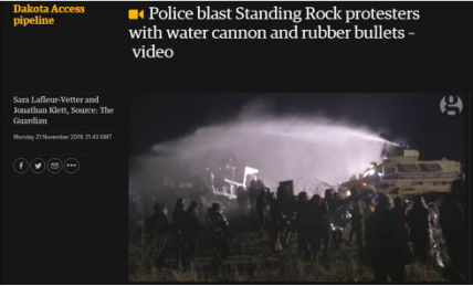 警方的粗暴執(zhí)法,引發(fā)了輿論的極大關(guān)注。英國《衛(wèi)報》引用北達科他州民權(quán)組織領(lǐng)導簡·庫克(Jen Cook)的話說:“這種行為罔顧非武裝抗議者的人道和安全,濫用非致命武器,是非常不合理的。此外,《華盛頓郵報》、《赫芬頓郵報》以及CNN等媒體,都對抗議引發(fā)的沖突進行了持續(xù)報道。