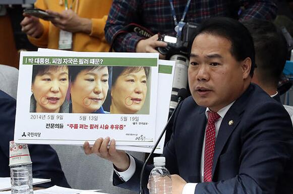 據韓國《中央日報》報道,14日的國會聽證會上,最大在野黨共同民主黨國會議員金漢正出示了一張“歲月”號沉船事故發生后樸槿惠嘴角有清晰淤血痕跡的照片,直接質問“樸槿惠當時是否打了用于微型整容的填充針,淤血痕跡是否為填充手術后的痕跡”。涉嫌為樸槿惠注射填充物的整容醫生金英才回答稱,應該是注射了類似人體組織的填充物,血管破裂才導致局部淤血,但他否認自己給樸槿惠打過臉部填充針。作為證人出席國會作證的前青瓦臺護理軍官申寶拉則表示,“歲月”號事故當天,曾向總統官邸轉交了漱口水。對此,共同民主黨國會議員孫慧媛表示,在接受麻醉進行整形手術后,嘴部會沒有知覺,因此一般醫生會勸告患者多使用漱口水。曾擔任總統咨詢醫生的金相滿證實,曾親自給樸槿惠做過兩三次胎盤注射。他還承認,當時是在無主治醫師的情況下單獨為樸槿惠實施了治療。