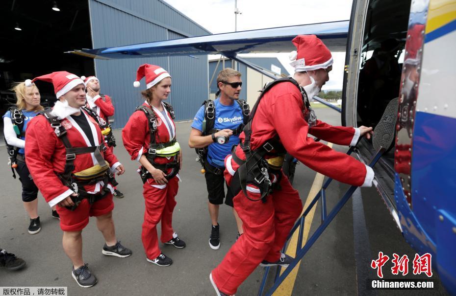 澳大利亞155名“圣誕老人”跳傘 創吉尼斯紀錄