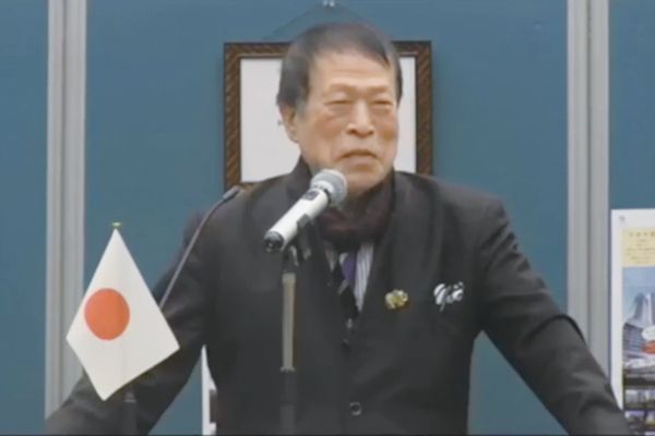 圖為APA 酒店社長元谷外志雄講話的視頻截圖。
