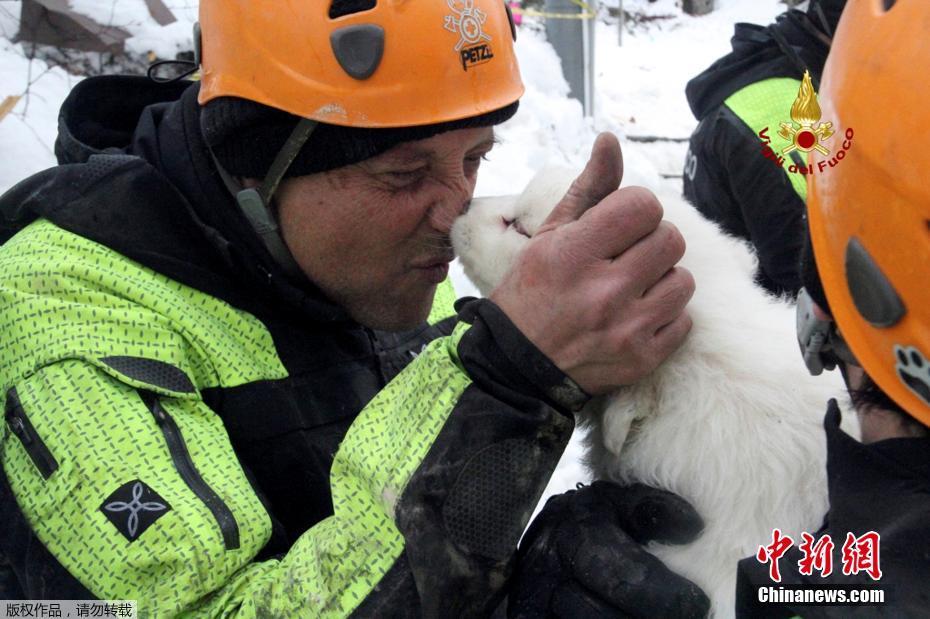 意大利遇雪崩酒店挖出三只狗寶寶 救援人員又抱又親