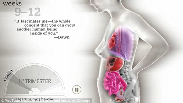 【環(huán)球網(wǎng)綜合報道】 據(jù)英國《每日郵報》2月23日報道,近日,美國芝加哥科學(xué)工業(yè)博物館制作了一則視頻,展現(xiàn)了婦女懷孕時身體內(nèi)各器官的變化過程,同時還配有不同的母親描述自己懷孕期間的感受。用戶可以自由地選擇視頻中的不同懷孕階段進(jìn)行觀看。