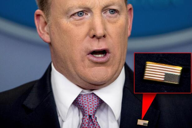 白宮發言人斯派塞將國旗胸針戴反 被記者和網友取笑