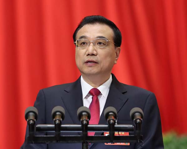 李克強總理作《政府工作報告》。新華社記者龐興雷 攝