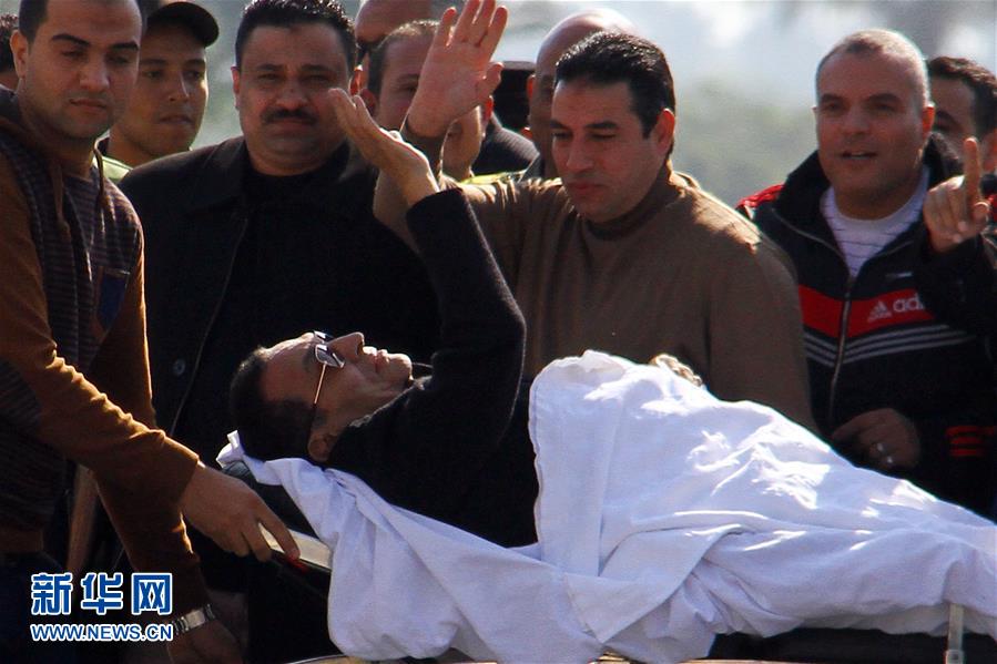 據(jù)埃及《金字塔報》消息,埃及總檢察長3月13日下令釋放前總統(tǒng)穆巴拉克。這張2014年11月29日拍攝的資料照片顯示,在埃及首都開羅,埃及前總統(tǒng)穆巴拉克(前)從馬阿迪軍事醫(yī)院被運(yùn)送上直升機(jī),前往法庭。新華社發(fā)(艾哈邁德·戈馬攝)