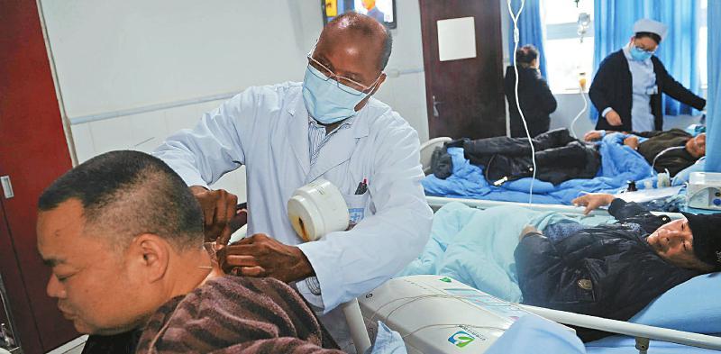 迪亞拉一絲不茍地為病人做針灸治療。 3月20日,在成都市新都區中醫院老年病區,一位皮膚黝黑、牙齒雪白的黑人醫生用一口流利的四川話與患者劉寒梅老人一邊交流,一邊嫻熟地扎針。他叫迪亞拉,來自馬里共和國,是新都區中醫院特聘的一位醫學博士,他在中國學習、工作、生活已有33個年頭。 1984年, 迪亞拉來到中國留學。1986年開始系統學習中醫。博大精深的中醫學讓迪亞拉如癡如迷,本科畢業后他堅持留在中國繼續深造。取得碩士學位后,他兩度拒絕回國工作的要求,自費來到成都中醫藥大學攻讀博士。為提升醫術,他拜很多名老中醫為師。在廣州他不僅學了中醫的“嶺南派”,到四川又拜在“神針楊”楊介賓門下學習“巴蜀派”,后來又進入了湖南中醫藥大學博士后流動站開展臨床科研。 外國人當中醫,首先面臨信任關。讓中國患者相信一位黑人中醫,決非易事。1997年,博士畢業的迪亞拉初到成都坐診,幾天沒一個病人找他看病,好不容易來了一個病人,開門一看他是個外國黑人,嚇得關門就跑。迪亞拉忍不住追過去,正好聽見病人跟導醫理論。于是,他上前給病人說:“我就是中醫!如果給您看病沒效果,我不收您錢!”經過精心診治,患者迅速康復。后來患者將母親和家人都帶來請這位黑人中醫診治。不到一個月,迪亞拉的病人逐漸增多。如今,慕名前來找“黑人中醫”的患者絡繹不絕,而他始終堅持自己的行醫準則:用心對待每一個患者。 除了行醫,迪亞拉還在四川、云南、湖南等地參與世界衛生組織和無國界醫生組織的艾滋病、大骨節病、麻風病和結核病等防治項目。在中國,迪亞拉不僅事業蒸蒸日上,他更收獲了愛情,和成都妹子楊梅結婚。2013年,為了追求自己的中醫理想,他放下在昆明工作的妻子和一對兒女, 一個人又來到四川,到新都區中醫院擔任特聘專家醫生。 來到中國30多年,迪亞拉不但能說標準的普通話,還掌握了粵語以及四川和云南等地的方言。他希望不但能扎根中國從事中醫藥臨床研究,而且能將中醫事業發展到非洲各國。本報記者 吳傳明 攝影報道