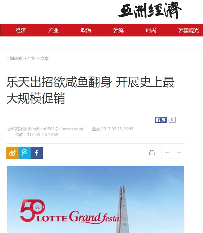 韓國《亞洲經濟》28日對此分析稱,韓國內需不振,中國“反制薩德”,樂天集團在四面楚歌的情況下,試圖通過大型促銷活動尋找突破口。