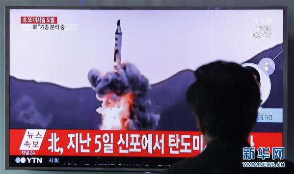 4月16日,在韓國(guó)首爾,一名男子在火車站觀看朝鮮試射導(dǎo)彈的新聞