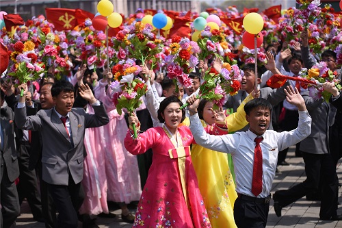 資料圖:朝鮮15日在平壤舉行紀念金日成誕辰105周年的閱兵式和群眾游行。新華社記者程大雨攝