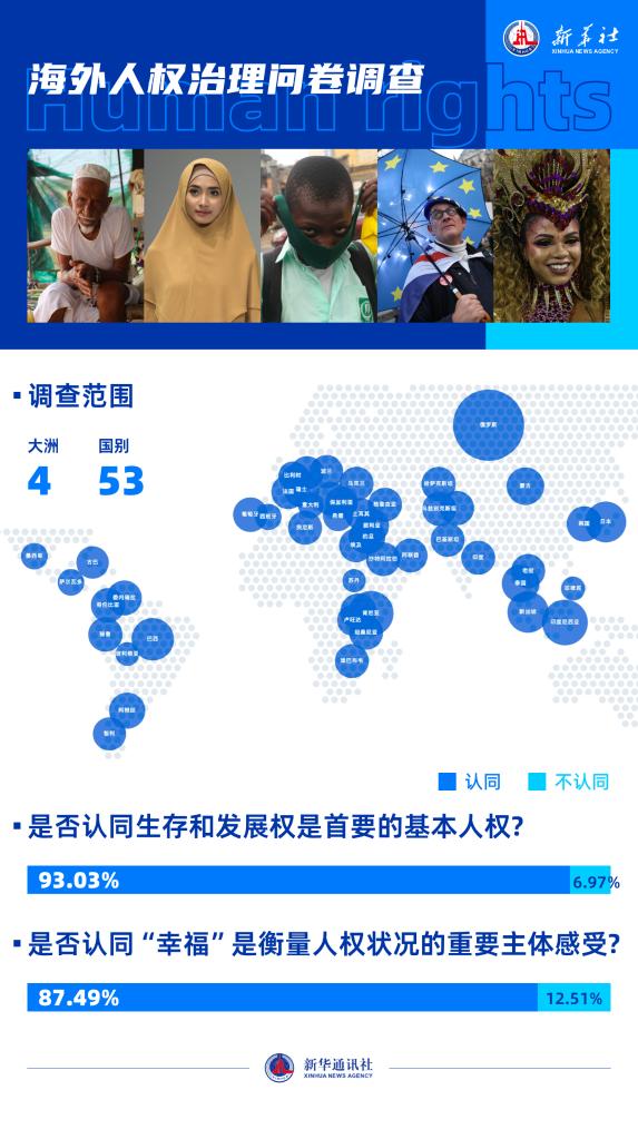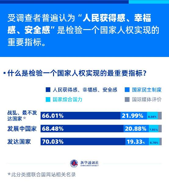 新華社這次問卷調查中,關于“自主而有效的國家治理對于人權保障的作用”,分別有超過52%和30%的受訪者選擇了“極為重要”或“非常重要”。