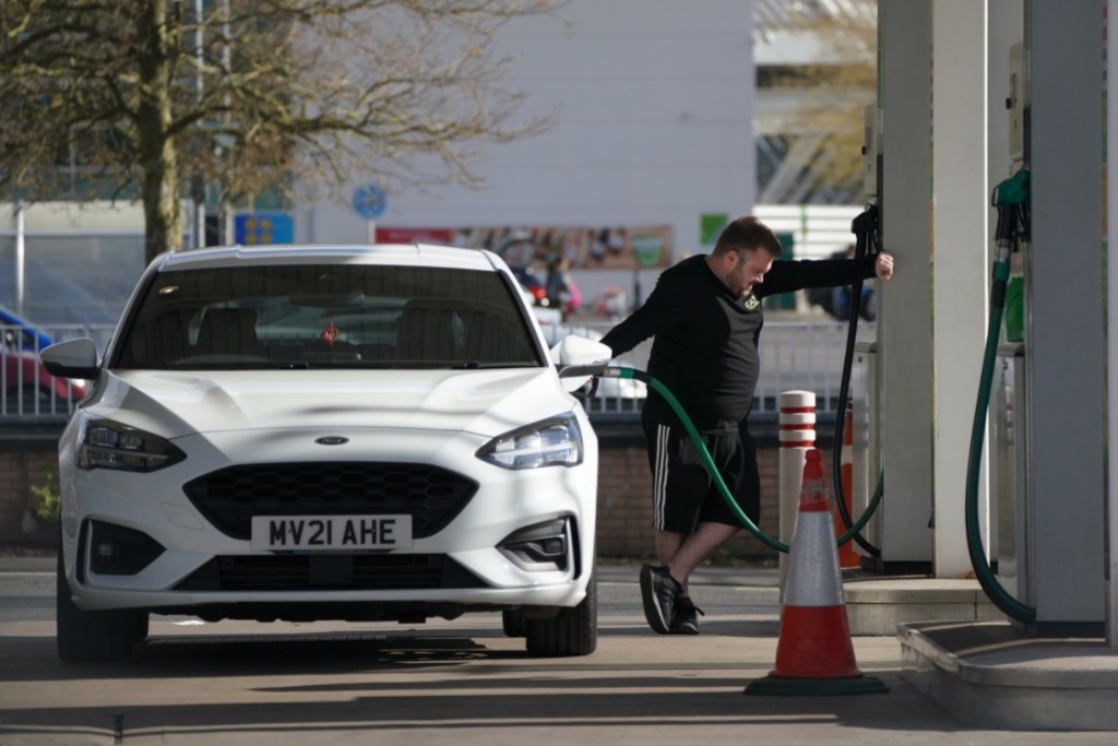 4月13日,一名男子在英國曼徹斯特一處加油站加油。新華社發(喬恩·休珀攝)