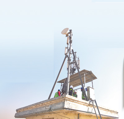 中國移動(dòng)辛姆巴科公司工作人員在高溫下開展4G基站建設(shè)。
