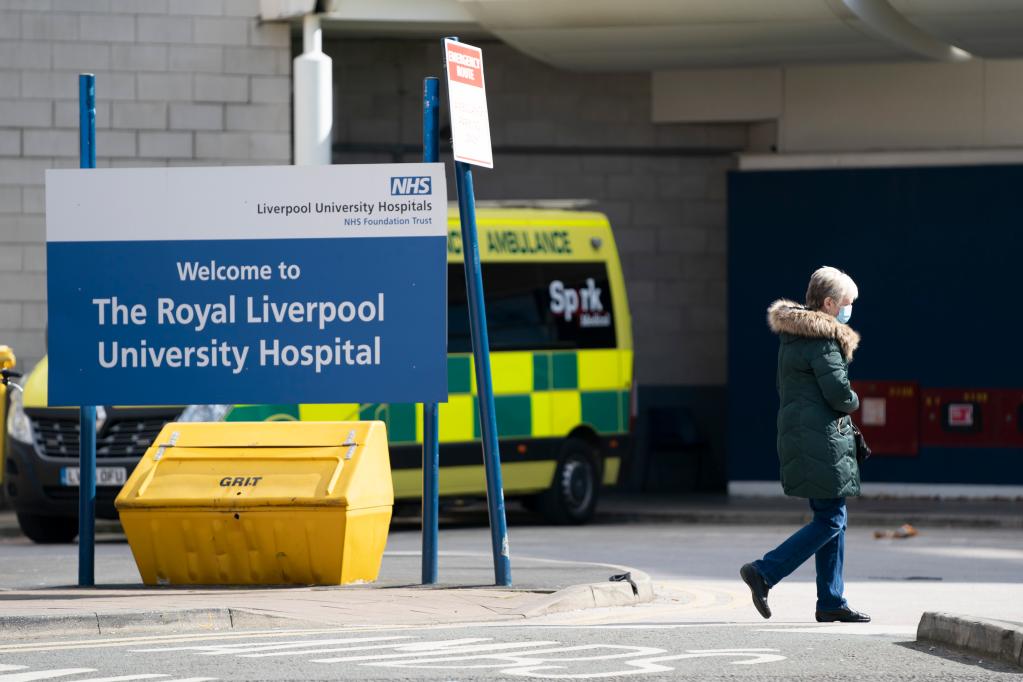 4月1日,一名女子經過英國利物浦的一家醫院。新華社發(喬恩·休珀攝)