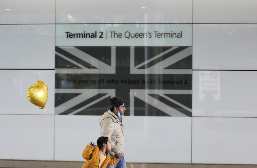 3月18日,旅客走在英國倫敦希思羅機場內。新華社記者李穎攝