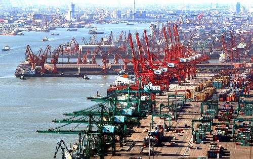 這是天津港集裝箱碼頭(2005年12月23日攝)。連續三年保持兩位數增長的中國經濟,今年以來增勢依然強勁。與此同時,經濟增長中也一度出現了投資增長過快、信貸投放過多等問題。中央及時采取有針對性的宏觀調控措施,經濟運行中的不穩定因素得到了初步抑制,經濟保持了既快又好的發展勢頭。新華社發