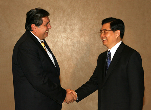 國(guó)家主席胡錦濤7日在悉尼會(huì)見(jiàn)秘魯總統(tǒng)加西亞