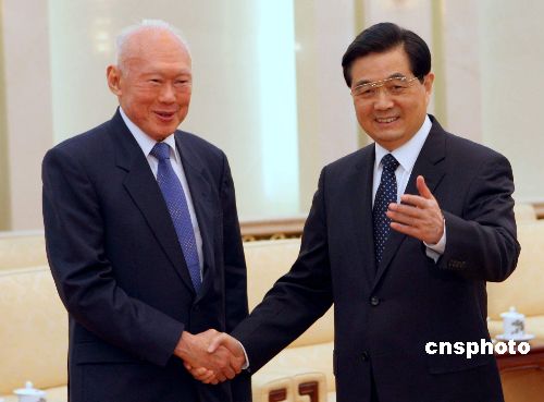 十一月十六日,中國國家主席胡錦濤在北京人民大會堂會見來訪的新加坡內(nèi)閣資政李光耀。 中新社發(fā) 任海霞 攝