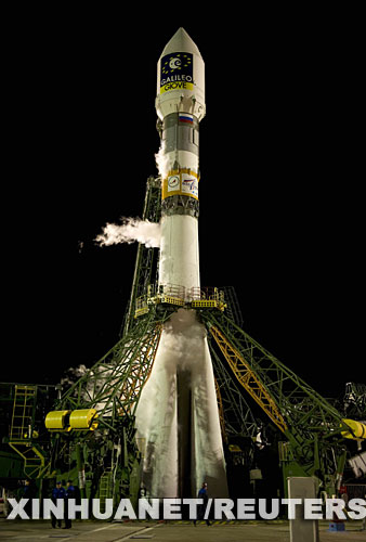 4月27日,在哈薩克斯坦境內(nèi)的拜科努爾發(fā)射場,運載歐洲伽利略全球衛(wèi)星導(dǎo)航系統(tǒng)(簡稱伽利略計劃)第二顆試驗衛(wèi)星的俄羅斯“聯(lián)盟”運載火箭佇立在發(fā)射臺上。運載火箭搭載著這顆名為GIOVE-B的試驗衛(wèi)星于莫斯科時間27日2時16分(北京時間6時16分)成功升空。新華社/路透