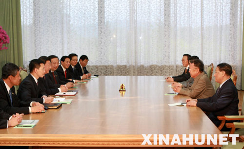 習近平首先向金正日轉達了胡錦濤總書記的誠摯問候和良好祝愿,對朝鮮建國60周年表示熱烈祝賀,并祝愿朝鮮人民在國家建設的各項事業中取得新的更大成就。