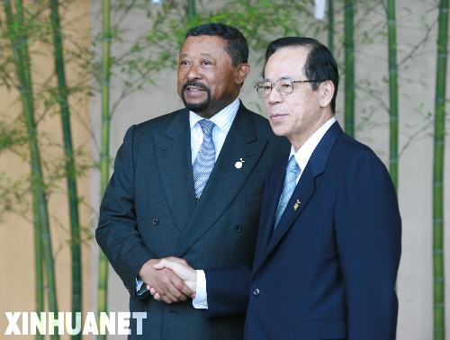 7月7日,日本首相福田康夫(右)在北海道洞爺湖舉行儀式,歡迎前來出席八國峰會的加蓬副總理兼外長、非洲聯(lián)盟委員會主席讓·平。當(dāng)日,八國集團領(lǐng)導(dǎo)人同非洲7國和非盟領(lǐng)導(dǎo)人對話會在日本洞爺湖舉行,標志著一年一度的八國峰會正式開幕。 新華社記者任正來攝
